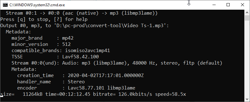 a command prompt will open and show the convert process: